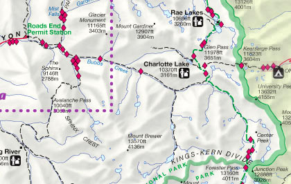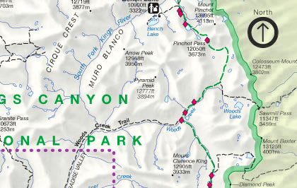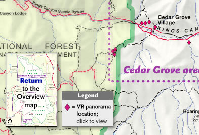 Map of Kings Canyon National Park area showing panoramas